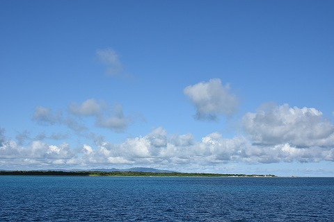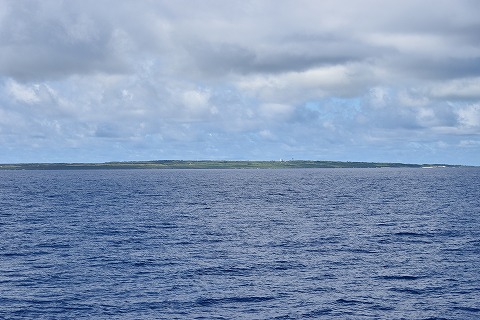 石垣港出航から約2時間で波照間島が近付いてきた。 正確には船が近付いているんだが、まいっか。 |