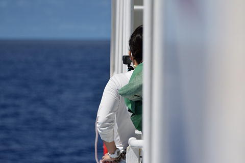 アクションカメラを持った女の子が 時折船から身を乗り出して撮影していた。 海に落ちるなよ〜。 |