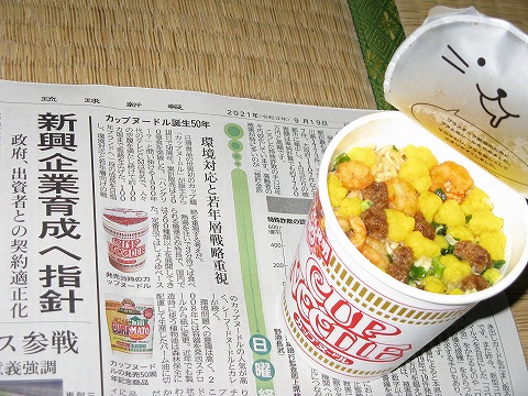 石垣島での朝メシは 誕生から50年と2日を迎えたカップヌードル。 50周年+1日である19日に買ってあったんだけど、 喰う機会を逃していた。 どうせなら晩メシは大盛UFOではなく、 こっちにするべきだったと、ちょっと後悔(笑)。 これまでの石垣島での様子はこちら。 |