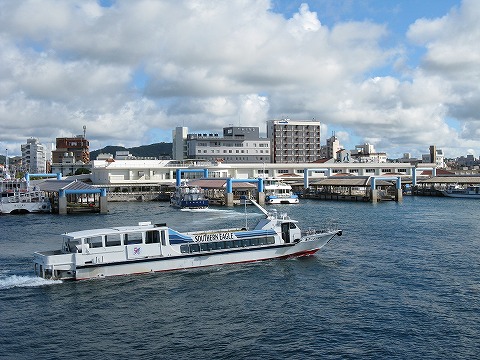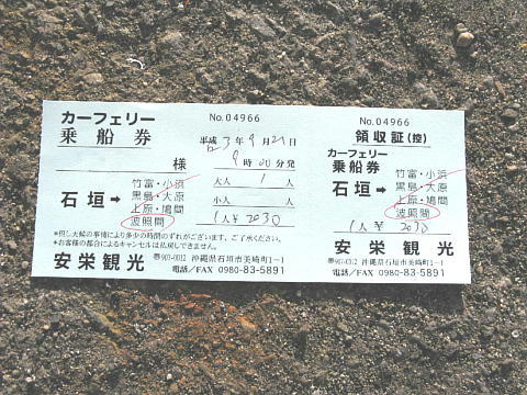 石垣島からの高速船が着く頃にレンタカーを返し、 船客ターミナルでチケット買う。 |