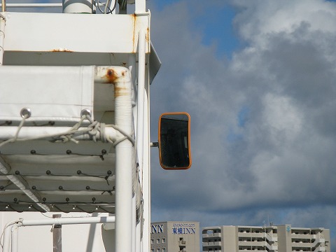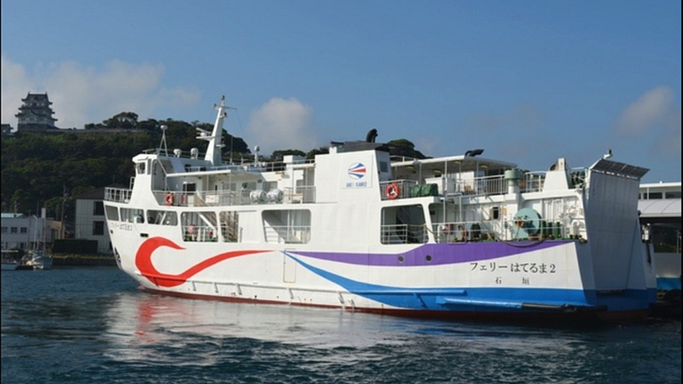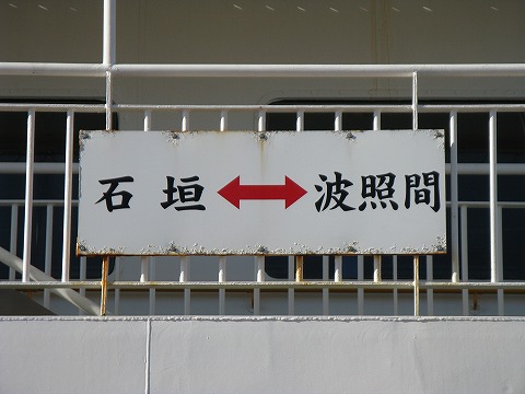 テツ的にいうところの「サボ」。 | 船尾の船名の部分をよく見たら「大島」の文字が確認できた。 波照間島の宿に着いてからネットで調べてみたら、 2005(平成17)年12月?〜2019(平成31)年1月まで 長崎県平戸市の平戸市営航路(的山(あづち)大島〜平戸)の 「第2フェリー大島」として就航していたんだね。 この船は長崎県内で波照間航路用として安栄観光カラーに 化粧直ししたところで、新造船にトラブルが発生したため、 また大島航路に一時的に復帰していた、とネット記事にあった。 |