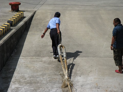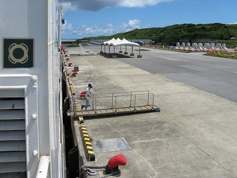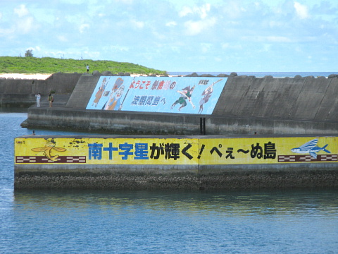 昨日はレンタカーにありつけなかったので 今日こそは借りたいのだが、 俺が目星を付けた港近くの店は予約を受けていない。 そこで、石垣島からの朝の1便が到着する前に店に行って借りようと、 歩いて10分ほどの港に向かう。 |