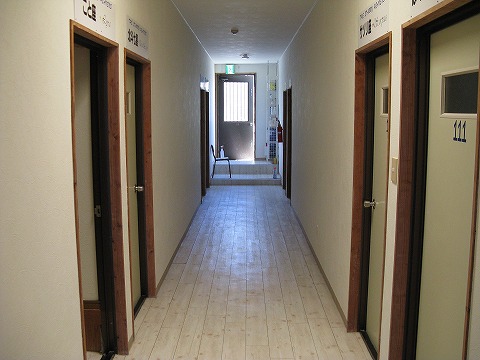 廊下の両側に各部屋がある。 なんとなく北大東島の「二六荘」の新館を思い出させる。 |