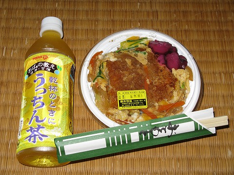 着いたのがちょうど昼時だったので、 すぐ近くのまちぐゎでかつ丼を買ってきて昼メシ。 |