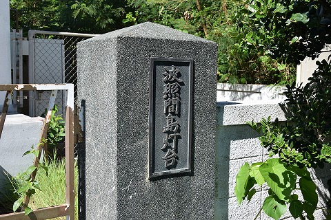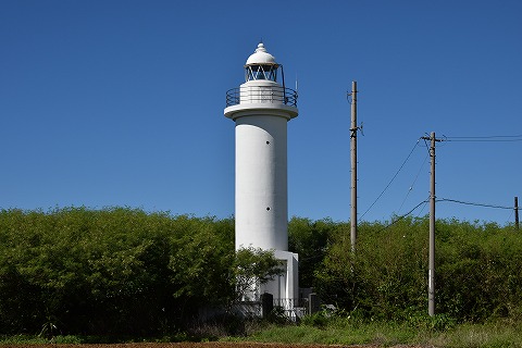 波照間島灯台の門柱。 | 波照間島灯台。 バックの青空に映える。 |