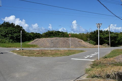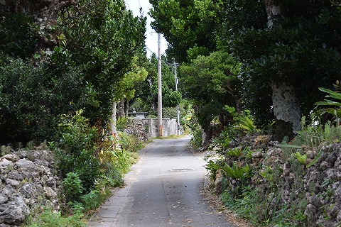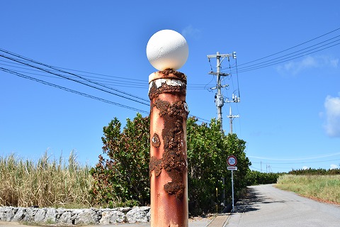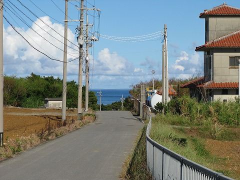 魔の三角地帯(笑)。 止まれの標識も3か所にある。 こういう風景は北大東島でも見たな〜。 |