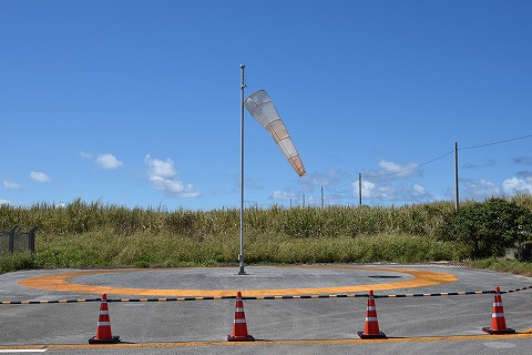 波照間空港。 げげげ、すごくきれいになってる。 2007(平成19)の11月で航路が廃止されているので さぞかし廃墟になっているだろうと思ってきてみたら、 とても立派になっていた。 クルマが何台か停まっていたから、事務作業などは今もあるようだ。 |