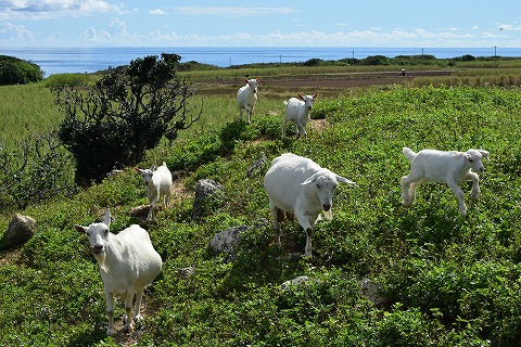 ヤギ牧場で撮影していたら、ヤギがゾロゾロと寄ってきた。 「ダンナぁ、何かまーさむんでもくださるんですかぃ?」ってな感じ。 何にもやらないよ〜だ。 |