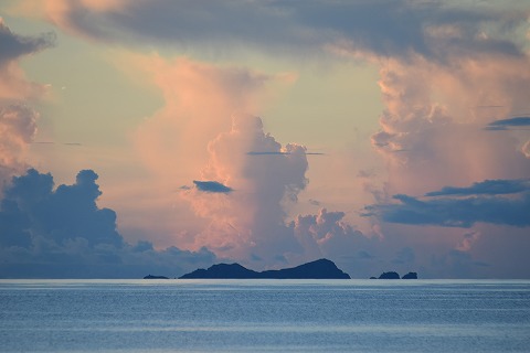 中御神島。 少しだけ夕焼けっぽくなっている。 |