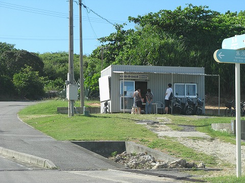 高速船からは客が結構降りてきて、レンタカー屋に群がっていた。 写真はその群れが一段落した頃に撮影。 レンタカー以外にチャリやバイクも貸しているが、 ほとんどがきれいになくなった。 早めに借りといてよかった〜。 |