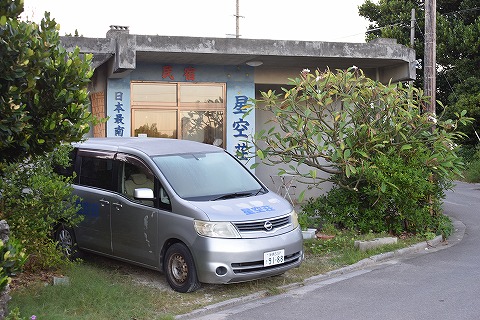撮影が終わり「星空荘」に戻ってきた。 写真左は宿併設の食堂(2021/09現在臨時休業中)。 1番右のクルマ(俺のレンタカー)の向こうの建物が宿泊棟。 なお、クルマを停めているスペースは宿の駐車場ではない。 まあ、テキトーに停めている、とそゆこと。 |