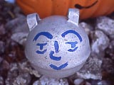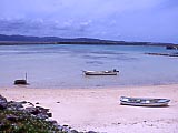 港東側のビーチ。海の向こうはすぐ西表島。 | 港西側のビーチ。岩に囲まれていて砂浜も小さめでプライベートビーチみたい。 | 夜、まるだいの庭に出てきたヤシガニ。 | 夜だけ咲くクジャクサボテン。 | ブイに笑顔。 | 金属ブイに味のある顔。 |