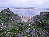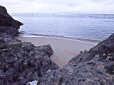 立原浜は、マイトウゼへの道の分岐点でもある。分岐点には国土地理院の「三角点」の標識も立っている。 | 立原浜からマイトウゼに通じる道。途中は牧草地である。 | ミニビーチへの入口。分かんないでしょ。でも、一周道路を歩いていると、何となく「道かな?」と思えるのが分かってくる。ここも、写真ではタダの草むらに見えるけど、実際は何となく、けものみちのような道のような、「感じさせるもの」がある。ただ、季節によって随分違うだろうけどね。立原浜入口から約3分。 | 入口から入ってきた。立原浜から外若浜に行く途中の海。 | 浜に降りてみるとこんな感じ。この日は大潮だったのでここまで来ることができたが、普段はムリだと思う。 | 結構ある、断崖。←から、約2分。 |
