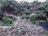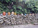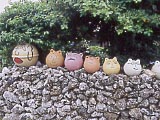 鳩間島コミュニティーセンター | 元、加治工(かじく)商店の敷地の石垣に乗っているブイ。 | ブイが増えてたよ。元、加治工商店にて。 | 朽ちたトラクター? | 民家 | がじゅまる? すごい根っこ。 |