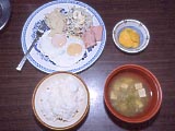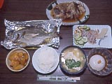 まるだいでの晩飯。この日は魚(アイゴ?)のバターホイル焼きが1匹丸ごと付いた。さすがに喰いきれなくて半身を残し、オヤジさんに「明日の朝飯に出してね。」って頼んだのに、出てこなかった…(涙)。旨かったのに残念! | まるだいの朝飯。 | |