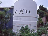 まるだいの貯水タンク。よく見ると、南の鳩間港や、北の浜までの距離や所要時間が書いてある。 | まるだいの昼飯。基本的に島内に飯処がないので、民宿は1泊3食になる。 | にっぽんの夏、 おきなわの夏、 まるだいの夏。 |