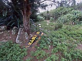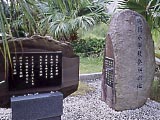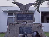 島の一周道路を歩いていると時々見かける、青のペイント。 | 植物にもペイントしてある。この意味は確認し損なったので、そのうち調べたい。 | パイナップルに見えるけど、違うんかな?実はアダンだよ。 | 廃車。島では時々目にする。確かに小さい島では廃車のしようがないかもしんないけど、ちゃんと処理するべきでしょうね…。 | 戦没者慰霊の碑。 | 碑の裏。名簿になっている。 |