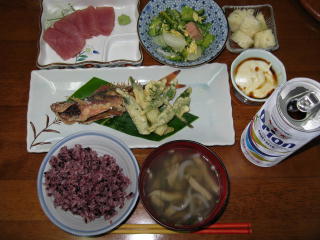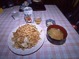 ある日の「さわやか荘」の晩メシ。 | 「さわやか荘」の屋上から西を眺める。 | ||||