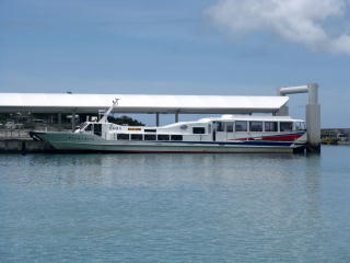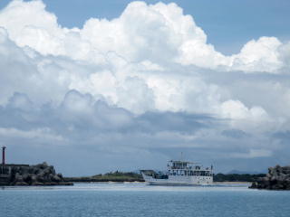 八重山観光フェリーの「かりゆし」。 | 入道雲に向かって出港していった。 | 安栄観光の「あんえい98号」。 | |||