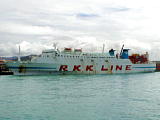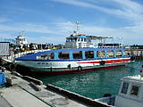 グラサンをかけたワンコをバイクの前カゴに乗っけてホッパー(現Coco!→後に閉店。)に買い物に来たオジサンがいた。とたんに周りのみんなのアイドルになった。通りすがりの女の子がバイクにまたがってこのコの友達にケータイのカメラで写真を撮ってもらってたときに、ついでに目線をもらった。撮影とこのサイトへの掲載とを承諾済。 | ホテル日航八重山。2017/04からは「アートホテル石垣島」。 | ホテル日航八重山のシーサーくん。 | よく、着陸前に竹富島との間の海で見つけられる、養殖(?)用の囲い(?)。羽田発石垣行きANK551便から。 | 2003/03/03から運航を開始した安栄観光のフェリー「ぱいかじ」。 | 琉球海運の「わかなつおきなわ」。 2006/09引退。 |