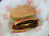 「A&W」。730交差点から、かみやーき小方向にちょっと行った右側。 | デラックスダブルチーズバーガー。390円。 | 「八重山冷菓」のじぇんじゃい。冷たくて甘くてまーさんどー。暑い中を歩いた後は、ホントにホッとする。店内で食すなら、学校の小さな椅子に座って片隅でシャクシャクする。200円。 | ソース焼きそば(八重山そば麺使用。)。650円。 「南ぬ島」 |