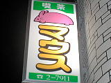 食い付かれそ…。すごい名前だな。 | ひたすら語り明かすのか? | パソコンが使えるのかな? 喫茶店の名前に「ねずみ」か〜…。店内にいそうで、あんまし行きたくないなー。 | こんなカッコのおねーさんが「玉付き」をしているのかしら。んまぁ、やらしい…。でも、店自体がやってなかったよ(笑)。 | うぉっ、まぶしい! | |
