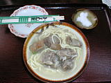 トニーそばでお馴染みの、朝からやってる「栄福食堂」。 | 山羊すば500円。 「栄福食堂」。 |