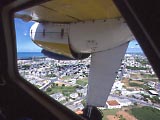 於茂登トンネル(北側)。立派なシーサーのデザインだが、反対の南側は何もない。 | 止まれの標識のある交差点に信号があって、青。どうしたらいいんでしょう。 | 波照間行きの離陸直後。エンジンが目の前なんで、席の場所によっては眺めが今イチのことがある。1Bがベストに近いが、操縦士の隣は基本的には座らせてくれない。3ABは窓がないから避けたい。となると、2ABか4AB辺りがいいとこかな。 2014年現在、波照間便は運航していません。 |
