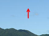 34℃といっても、沖縄での34℃だよ。もう、くらくら…。 | 晴れ晴れ晴れ晴れ晴れ晴れ晴れ! | 内地は梅雨で雨だってのに、OKINAWAだけは晴れだぜぃ! | 川平湾で風景を撮影したら、明らかに飛行物体が写った。赤矢印の所に何か飛んでいる。 | ←の写真の飛行物体部分を切り取ったもの。原版のままの大きさである。少し楕円がかっているように見える。撮影時は全く気づかなかった。UFOに見えるが、案外正体は何でもなかったりしてね。ただ、絶対に鳥ではない。 …と思っていたが、後日内地で風景を連続撮影したときの1コマに翼を畳んだ瞬間の鳥がこんな感じで写っていた(前後のコマでは羽ばたいている鳥だった。)ので、今は「鳥」だと思っています。 「…」以下2014年追記。 |