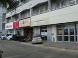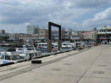 旧離島桟橋。今も高速船の停泊場になっている。 | 船関係の店だったところはドコモショップや空き店舗になっている。 | 閉めたままの店もある。 | 元安栄観光 | 元波照間海運 | 旧離島桟橋全景。右の大きな建物は、ホテル「イーストチャイナシー」。探偵ナイトスクープが取材に来たこともある。 |