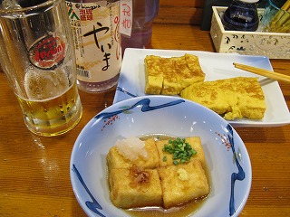 アフターダイブは、昨日と同じ 「南の島」でうだうだと。 ピリ辛卵焼きと、島豆腐の揚げ出し。 どっちも、で〜じま〜さんどー。 |