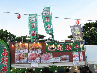オリオン生が1杯300円。 | いろんな店が出てるよ。 | 石垣牛もあるよ〜。 | |||