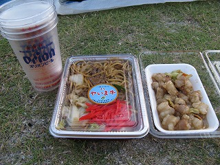 食糧を調達してきた。 やいま牛(石垣牛じゃないよ。)入りの 焼きそばと、石垣牛のモツ。 既に4杯目に突入している(笑)。 |