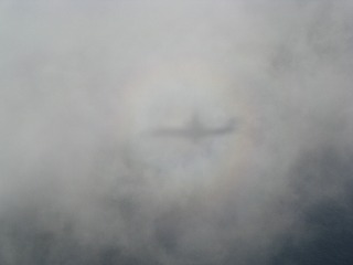 与那国発石垣行きRAC742便が 石垣空港への着陸態勢に入った。 自機の陰が雲に映る。 ちなみに、この直前までの 与那国島での様子はこちらからどうぞ。 |