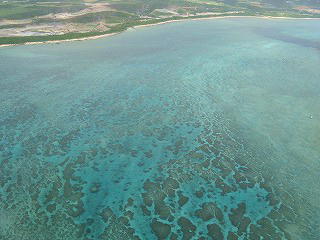 与那国から30分弱のフライトで 石垣空港に着くが、 その直前に見える海がきれいなんだな。 |