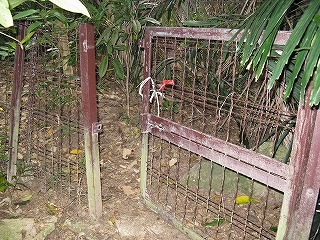 先月はこの柵で引き返した。 道端の階段のスタートから ここまで僅か2分。 前回は初めてだったこともあり、 3分かかったっけ。 「2分も3分もほとんどおんなじだろ!」 という声が聞こえてきそうだが、 初めてでおっかなびっくり進むのって 時間がかかるような気がするんだよね。 今回は柵がちょっと開いていた。 駐車場には俺の他にもう1台いたから 誰か先客がいると思われる。 |