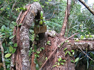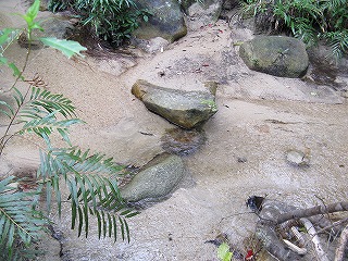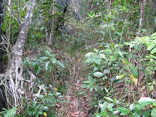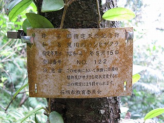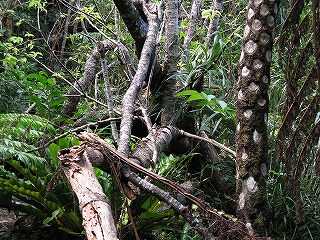 ※このスペースを使って、 カンヒザクラを見に行くときの注意点。 現地まではそれなりのトレッキング コースなので、「観光系」の 軽い服装やサンダルは避けるべき。 ○最低でも長袖&長ズボン&スニーカー ・基本的に登山道は整備されていない ・苔むした石があり、それを踏むと滑る ・倒木を腰下ぐらいで跨ぐことがある ・地面が湿っていてその上に落ち葉が 被さっていると滑りやすい ・現地までは文字による案内はない 今回、Tシャツ&作業ズボン&ズック というイデタチだったが、 腕に何か所かにスリ傷を作った。 ケモノ道を通るので草や細い木などを かき分ける場面が何回も出てくる。 それらがかき分けた反動で戻る作用で 肌をするのだ。 また、滑って捻挫などをする恐れ があるし、滑ったときに手を突いて ケガをするキケンもある。 できれば軍手もあるといい。 トレッキングに慣れていないと 息が上がるのは間違いないので 水やお茶もあった方が安心だ。 |