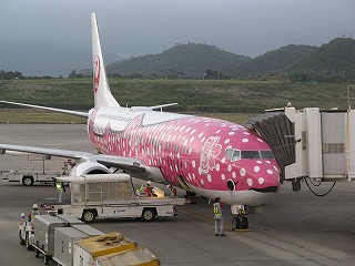 無事に石垣空港に着陸した。 相変わらず、具志堅用高さんが 笑顔でお出迎え。 |