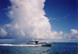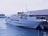 並走する、安栄観光の高速船。小浜島行きの八重山観光フェリーの高速船から。 | 集落上空。北から南方向を撮影。与那国発石垣行きJTA962便から。 | 港上空。船着き場周辺はきれいに掘って造っているのが分かる。与那国発石垣行きJTA962便から。 | うふだき荘 | 小浜行の八重山観光フェリー「サザンドリーム」。他の20tほどの高速船に比べるとかなりでかく、74tある。 | |