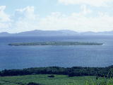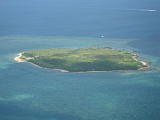 嘉弥真島。 飛行機からヒジョーに苦しい姿勢でかろうじて撮影した。だから少し傾いている。 |
