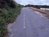 シュガーロード入口。さとうきびってことね。はいむるぶしの近く。 | 沖縄電力小浜配電塔 | 救急患者搬送用ヘリポート | うふだき登山口 | センターラインのある片側1車線の道なんだけど、植物がぼうぼうに生い茂って、片側をほとんどツブしてる…。 | 前もって東急観光で発行してもらった鳩間島行きのフェリーのチケット。金額は手書きではなく、小切手の印字機のようなものでごりごりと刻んである。 ※小浜島とは直接関係ないが、小浜島の民宿で写真を撮ったもんで…。 |