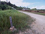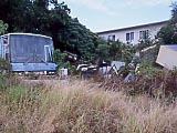 はいむるぶし上空。 | はいむるぶしの入口。 | 入口の横にデンとある。 | 小浜島の一大リゾート施設。 | ちょっと裏に回ったら、施設の廃棄物がいっぱいあった…。 | ぽつんと売り地。 |