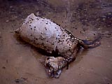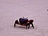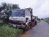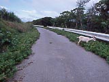 民宿「うふだき荘」の名物「黒糖アイス」。旨いよ。 | 浜にいたカニさん。 | ヤギの死体も転がっていた。この写真は載せようかどうしようか迷った。が、記録として載せることにした。 | トラックの廃車。 | 写真ではよく見えないけど、首輪のロープは道の左側にくくりつけてあるので、ヤギが右側にいるってことは、ロープが道に横に張られているようになっているわけで、バイクでは通れません。 | 島の最高峰の「大岳(うふだき)」から、北方向を望む。標高99mの頂上に展望台がある。登山道はなんと麓からまっすぐ! 5分ほどで着く。 |