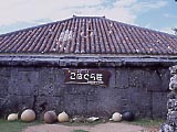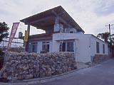 小浜保育園 | NHKの朝の連ドラ「ちゅらさん」でえりーの実家で民宿ということになっていた「こはぐら荘」。実は個人の家。 | こんなプレートも立っている。 | 島のあちこちで黄色い目立つ看板を見る。食堂「結」とは果たして… | 「結」は普通の食堂だった。 | 消防団の車庫。火事なんかあるのかな? |