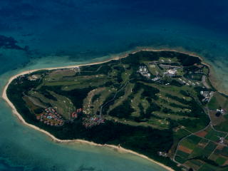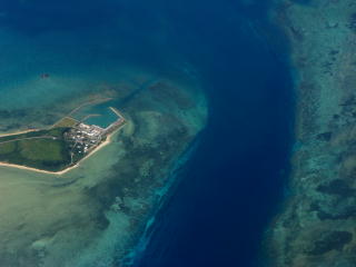 東端のリゾート施設上空。 北から南方向を撮影。 石垣発与那国行きRAC741便から。 |