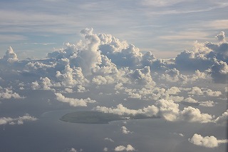 石垣発与那国行き RAC741便から。 雲の下に黒島があるよ。 2020/09/17撮影 |