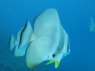 2日目の1本目は、 ツバメウオがいるポイント。 20匹ぐらいの群れがいた。 |