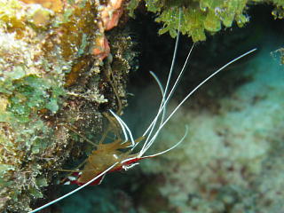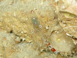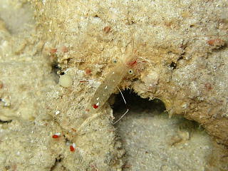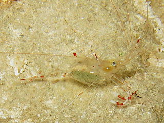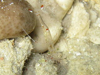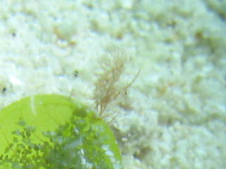 フィコカリスシムランスという、 和名のないエビ。 数mmの大きさだ。 俺には、なにがなんなのかさっぱり分からん…。 |