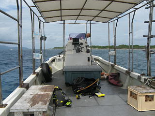 2本が終わってから昼メシ。 | 夕方前の石垣行きの高速船で 石垣島に帰る。 この先の石垣島での模様はこちら。 あ、ダイビングはもうないよ(笑)。 |