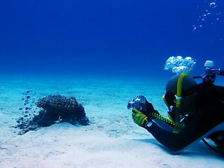黒木さんが撮ってくれた俺。 カメラはOLYMPUSの「TG-6」。 今回のこれまでのダイビングで行き会った ダイバーさんも持っている人が多かった。 ハウジングを着けると-45m対応になるが、 カメラ単体でも-15m対応なので、 万が一ハウジングが水没しても カメラは助かる可能性がとても高く、 安心だよね。 しかし、カメラの「色の作り方」が ちょっとオーバーな気がする。 特にいわゆる「オリンパスブルー」は 行き過ぎ感を覚えるな〜。 これは設定で調節できるのかな。 |